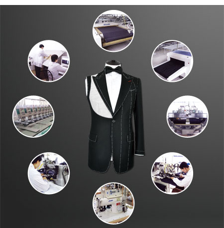 服裝設(shè)計系統(tǒng)來自美國,實現(xiàn)電腦排版、放碼;預(yù)縮機(jī)來自日本,預(yù)縮后面料經(jīng)偉線調(diào)整到穩(wěn)定狀態(tài);自動粘合機(jī),可根據(jù)布料特點和要求自動控制粘合溫度、壓力、速度,從而達(dá)到了理想的粘合效果;日本重機(jī)釘扣機(jī),精確而高效。德國、意大利、瑞典等國智能吊掛流水線及多種自動化控制設(shè)備的應(yīng)用,無不滲透著科技與智能的高效組合,使整個縫制過程吃量均勻,精工工藝,絲絲入扣。意大利邁卑整燙定型設(shè)備,采用符合西裝潮流的人體模型設(shè)計,具有激光定位、電腦程控、高溫定型、真空吸濕等一流特性,整燙后的衣服整體立挺飽滿,布絲順直,與人體相得益彰。